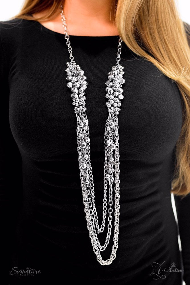 Clusters of faceted silver beading give way to layers of bold silver chain. Varying in size and shimmer, the dramatic silver chains drape across the chest, while sparkly silver beading trickles down the sides of the centermost chain for an edgy finish. Features an adjustable clasp closure.
