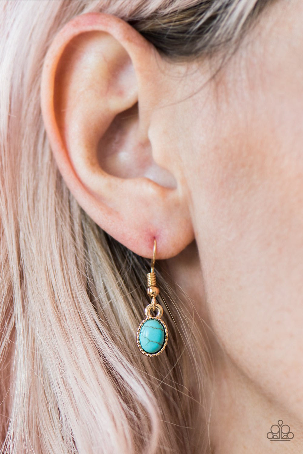 Smooth turquoise stones are pressed into shimmery gold frames, creating a natural and earthy look below the collar. Features an adjustable clasp closure.