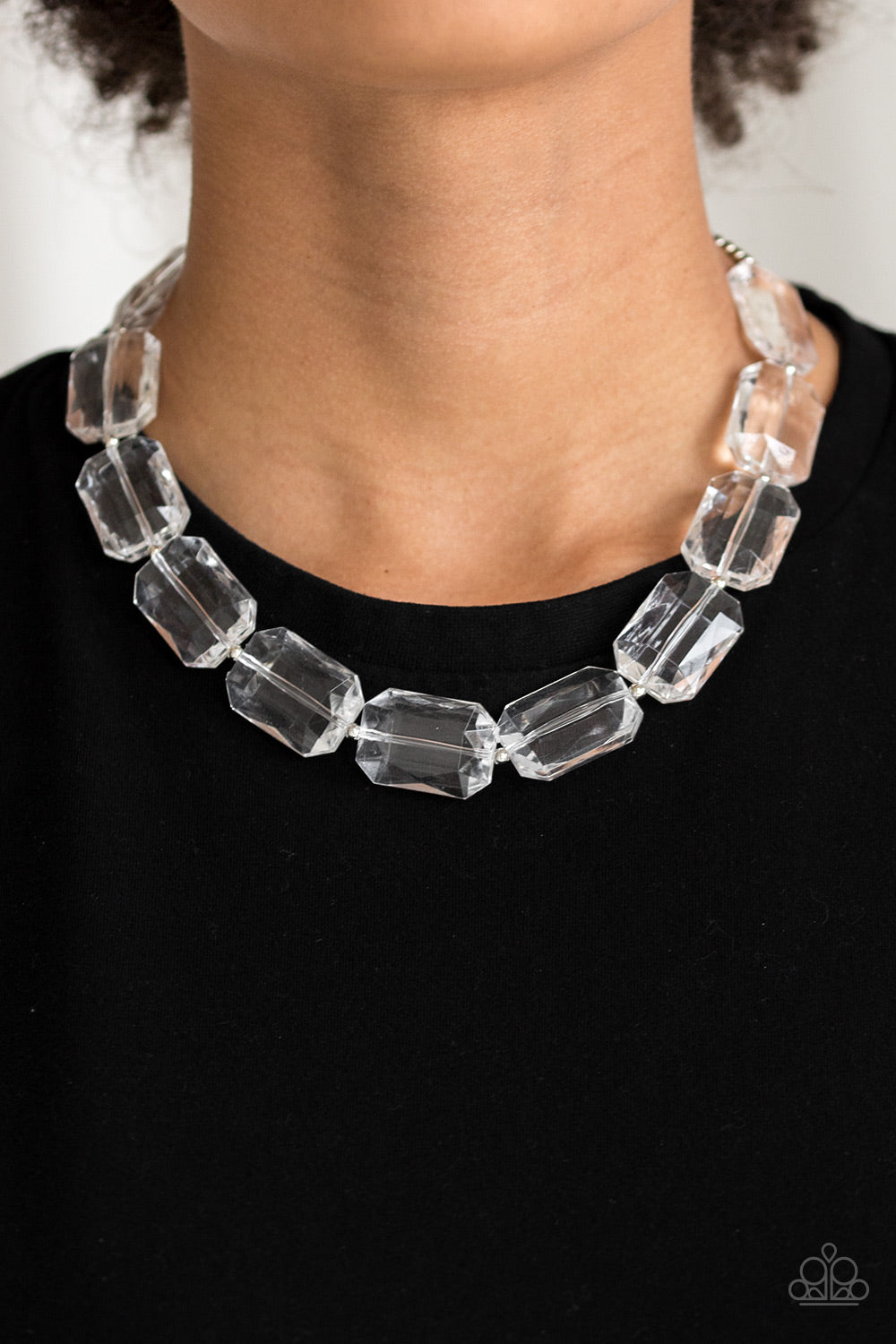 Infused with dainty silver beads, glassy emerald-cut beads join below the collar for a dramatic look. Features an adjustable clasp closure.